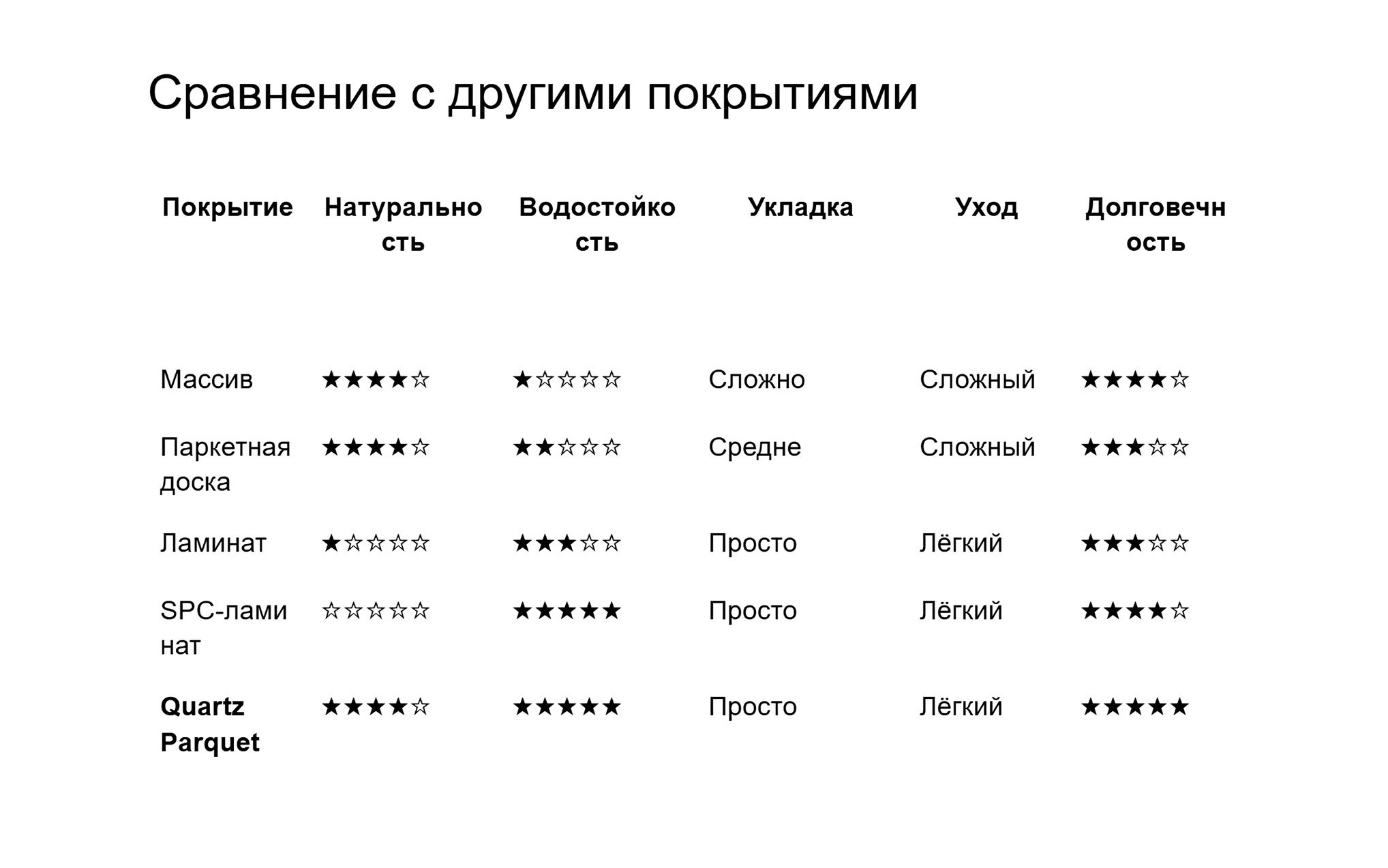 Это первый в мире настоящий кварцпаркет, получивший официальный патент и статус новой категории в напольных покрытиях.